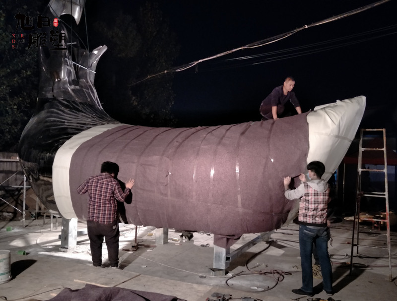 不銹鋼雕塑安裝方式一般為焊接,較牢固,即雕塑本身的骨架與基座上預(yù)埋鐵焊接,預(yù)埋鐵下邊焊接鋼筋,根據(jù)雕塑的尺寸來確定鋼筋的長度以及預(yù)埋鐵的大小。為了美觀,通常情況下,安裝雕塑完畢后,基座會粘貼大理石或者花崗巖板材。