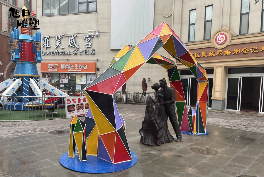 不銹鋼雕塑是在傳統(tǒng)石雕的基礎(chǔ)上發(fā)展起來的一種新興雕塑種類,因?yàn)槠涮赜械拿髁痢⒒顫?、不易污染、與現(xiàn)代都市生活相符等特點(diǎn),已經(jīng)逐漸被大眾接受,在市場(chǎng)上所占的份額越來越大,逐漸有超過傳統(tǒng)石雕的趨勢(shì);生活中我們到處可以見到不銹鋼雕塑,咖啡館、酒店、餐廳等都充分利用其裝飾作用,給整個(gè)大環(huán)境起了很大的烘托作用。它整體的光感很強(qiáng)不容易隨壞而且有整體感覺。