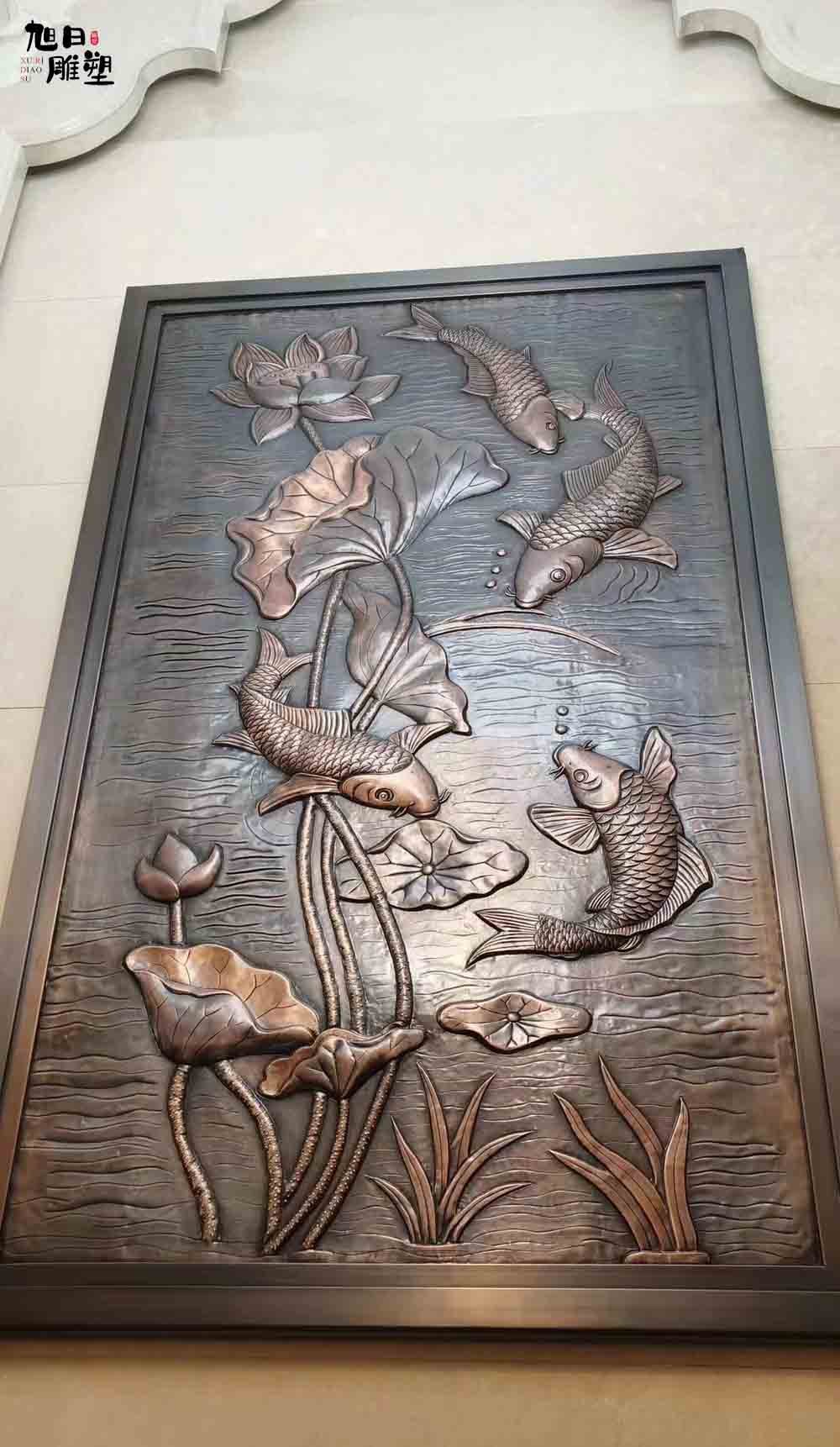 作為浮雕創(chuàng)作的重要表現(xiàn)形式、鍛銅浮雕依其金屬材料所特有的質(zhì)感和視覺(jué)效果,在壁畫、壁飾作品中發(fā)揮著重要的作用,是金屬浮雕的重要表現(xiàn)形式。鍛銅浮雕是以銅及銅合金板材為主要材料,各類有色金屬及黑色金屬板材并用,通過(guò)錘鍛加工制成金屬藝術(shù)品或工藝品。