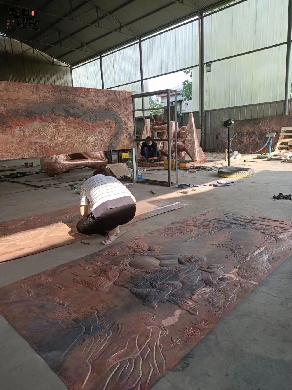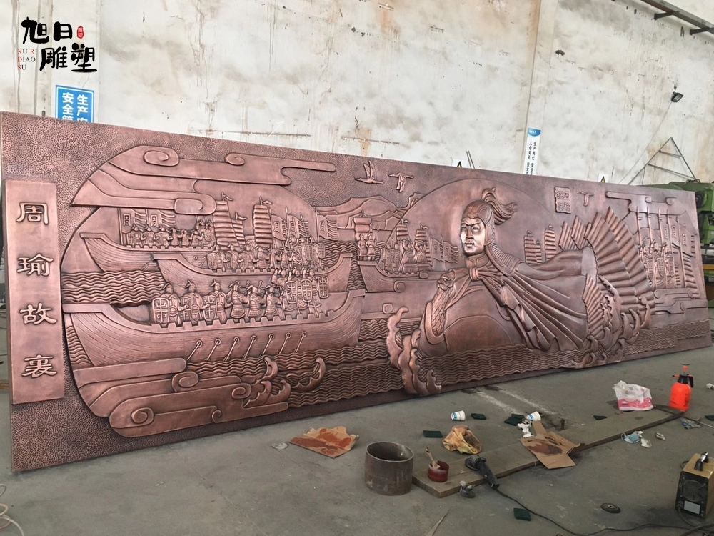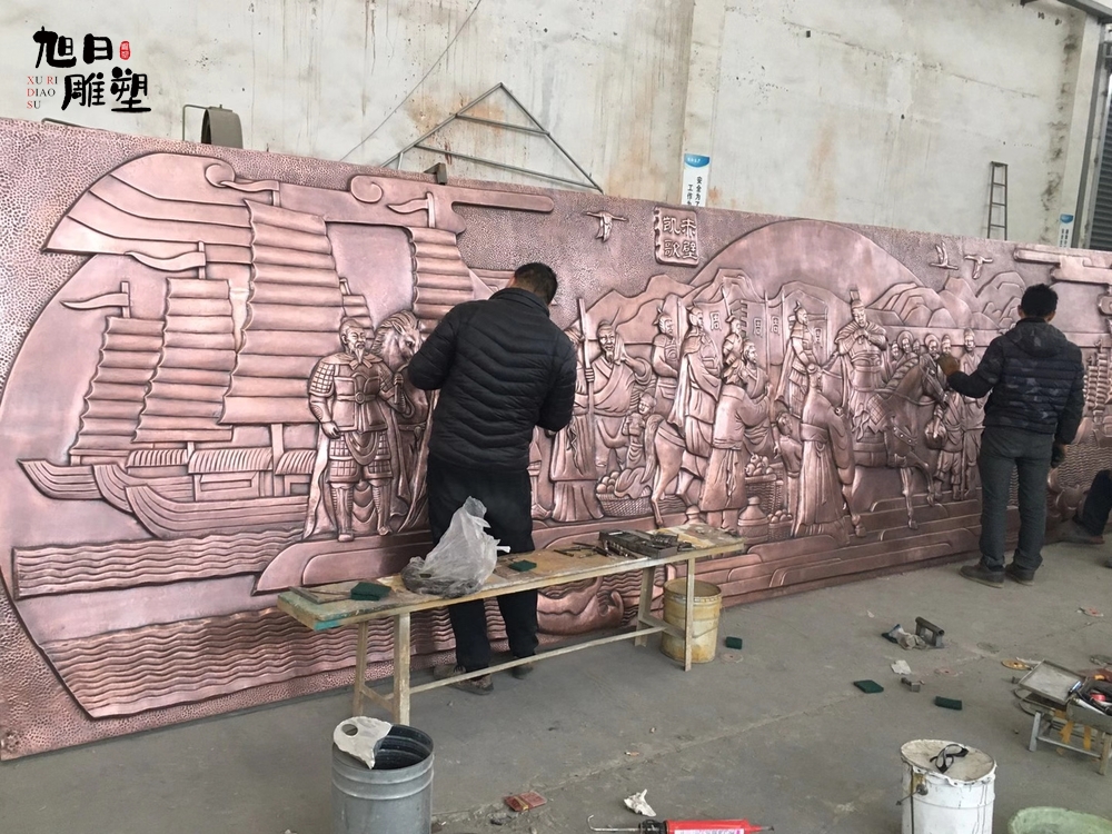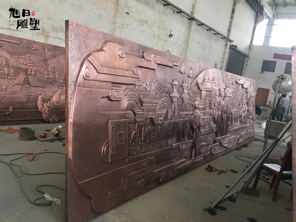 鍛銅浮雕不僅代表著文化產(chǎn)業(yè),鍛銅浮雕已有幾千年的歷史。鍛銅工藝品的造型,主要為平面的片活,片活是平裝在某些器物上或懸掛起來供人欣賞。鏨刻工藝的操作,是在設(shè)計好器行或圖案后,按照一定的工藝流程,以特制的工具和特定的技法,在金屬板上加工出千變?nèi)f化的浮雕狀圖案。完成一件精美的鏨刻工藝品需要十多道工藝流程,加上技術(shù)工人的格調(diào)創(chuàng)造,匠心獨(dú)運(yùn)地打造出個性化,現(xiàn)代化的雕塑作品。