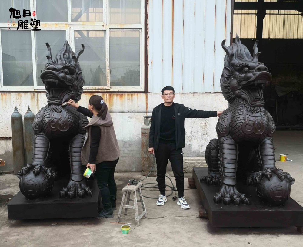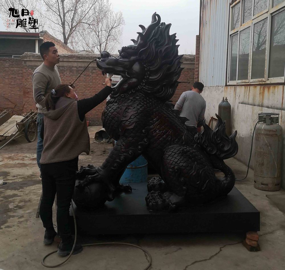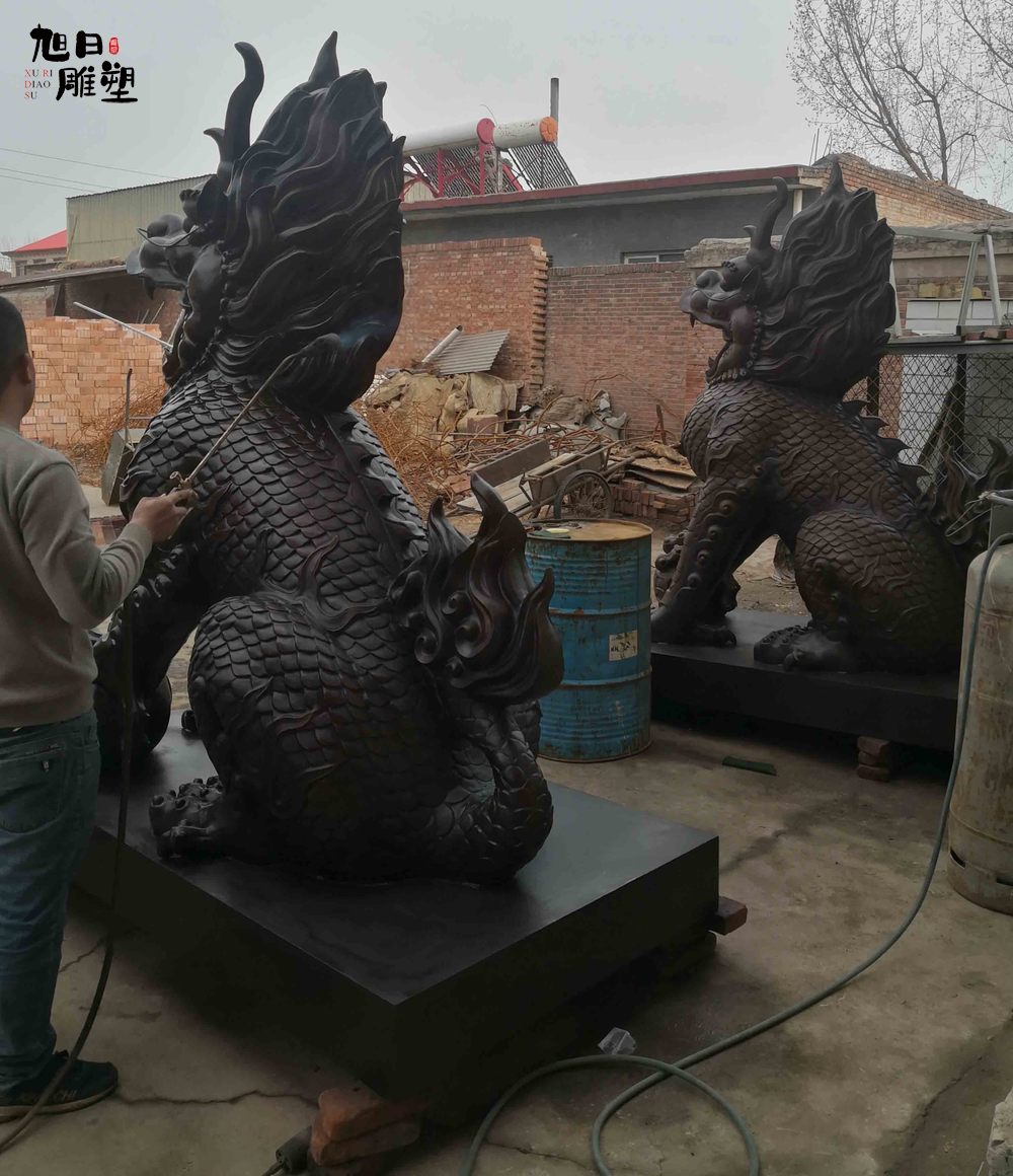 相較于鋼鐵類材質,銅的壽命長,算是永久性材料之一,不易風化、耐腐蝕(當然會生成一些銅綠,但比鋼鐵要好得多,不會銹得過于嚴重)耐磨等特性;相對于黃金來說,銅的熔點低,銅水流動性好,易于鑄造成型,而且價格也低的多。鑄銅雕塑工藝歷史悠久,失蠟法鑄造工藝成熟,制作的雕塑為空心,能有效的控制重量,尤其制作頭重腳輕而且中心偏離支撐點嚴重的作品時,可以通過上面做得盡量薄,下面做得很厚以調節(jié)重心位置,能更牢固,還可根據(jù)作品創(chuàng)意表面貼金,鎏金,彩繪,仿古的效果,使得雕塑作品更加豐富和美觀。