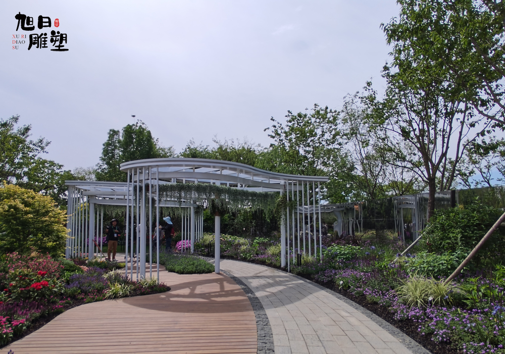 廊架可應(yīng)用于各種類型的園林綠地中,常設(shè)置在風(fēng)景優(yōu)美的地方供休息和點(diǎn)景,也可以和亭、廊、水榭等結(jié)合,組成外形美觀的園林建筑群;在居住區(qū)綠地、兒童游戲場(chǎng)中廊架可供休息、遮蔭、納涼;用廊架代替廊子,可以聯(lián)系空間;用格子垣攀緣藤本植物,可分隔景物;園林中的茶室、冷飲部、餐廳等,也可以用廊架作涼棚,設(shè)置坐席;也可用廊架作園林的大門。